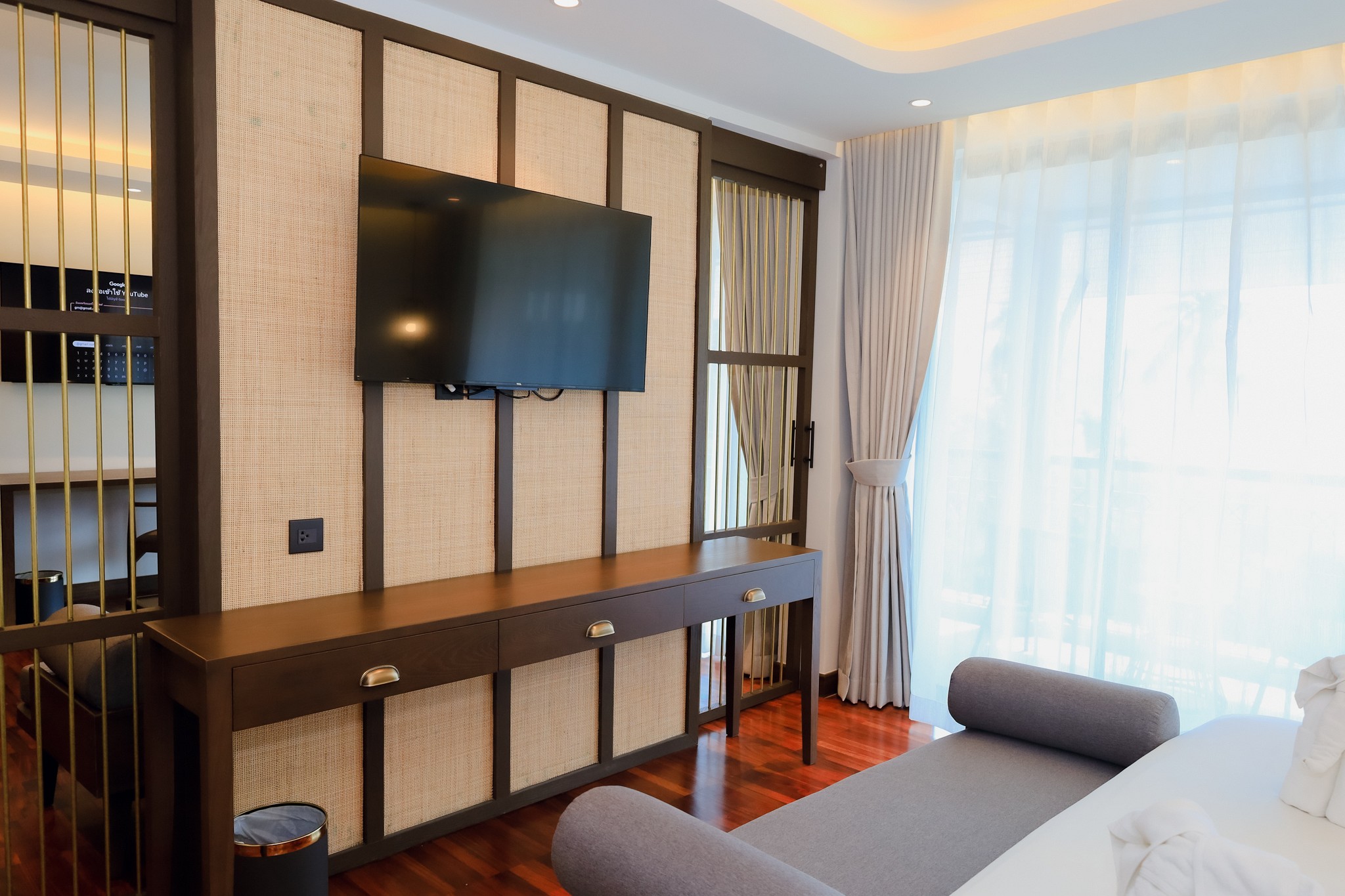 The 82sqm suite at our hotel in Kata has a separate living room and bedroom divided by elegant sliding doors. Feel at home in the spacious living room on the large comfortable sofa and gaze out at the amazing view of the Andaman Sea. The private balcony is accessed from the bedroom and living room where guests can relax and feel the breeze over the tropical treetops.